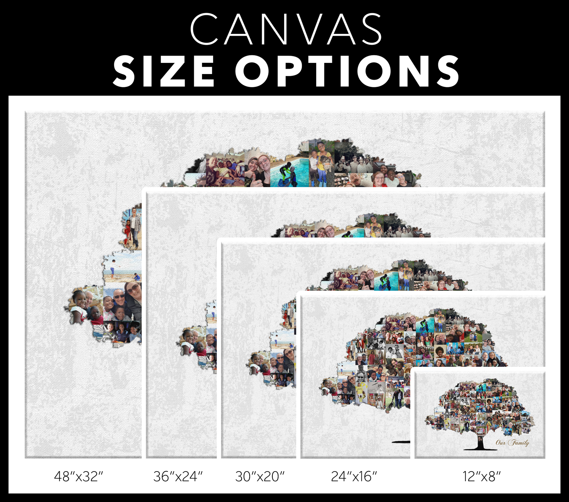 Traje esto para mi mamá y agregué fotografías antiguas de los años 70 y 80. Quedó genial, incluso las fotos antiguas salieron bastante claras. El material de la lona es de buena calidad.