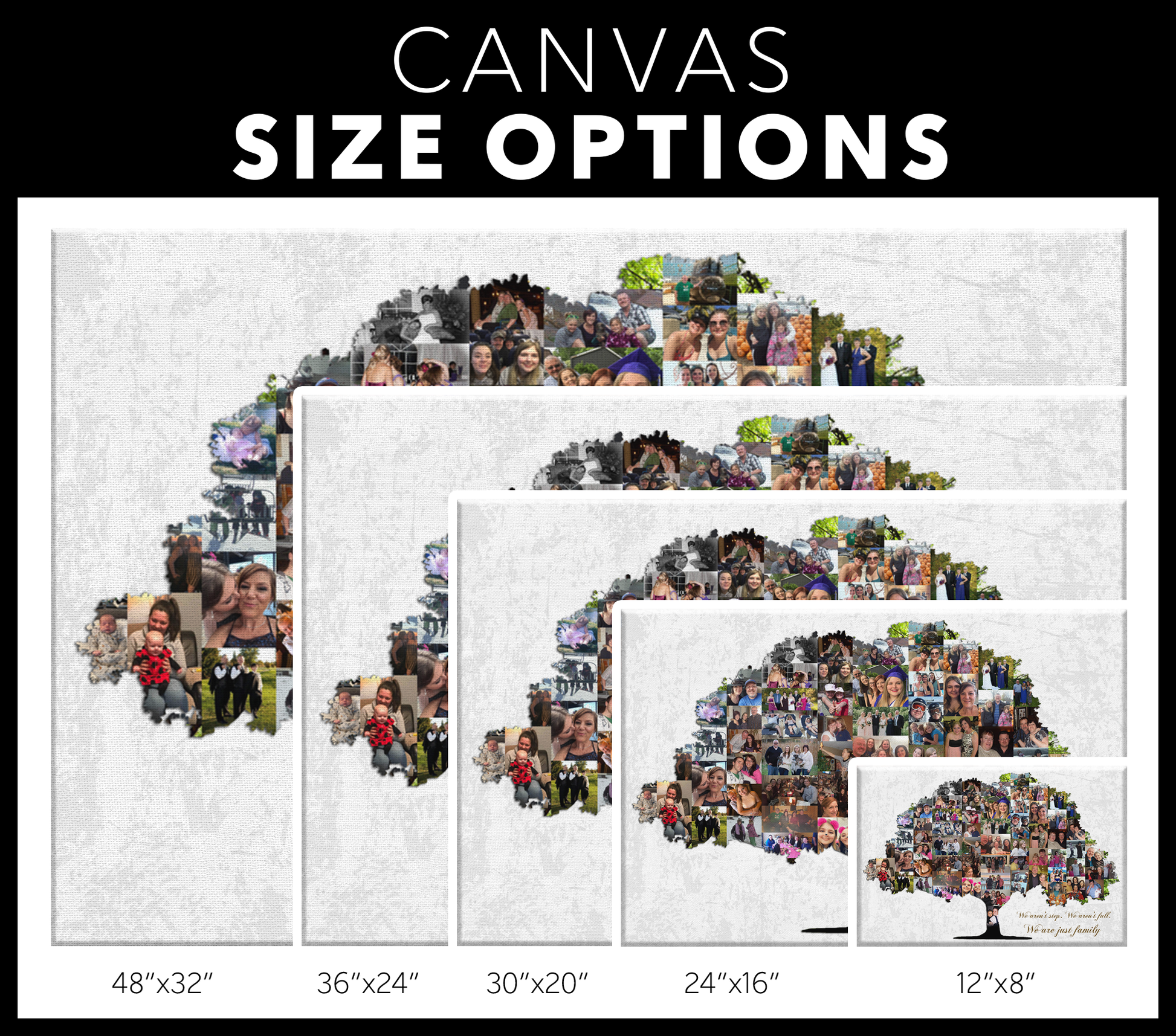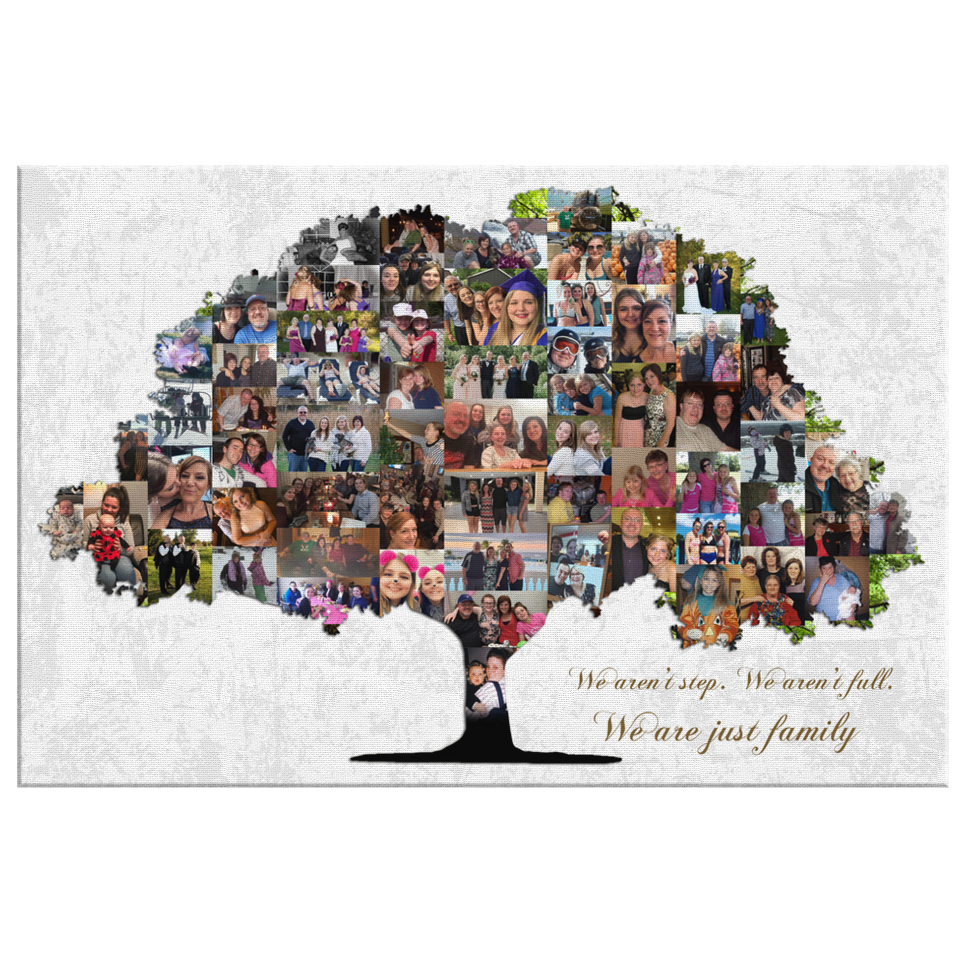 Traje esto para mi mamá y agregué fotografías antiguas de los años 70 y 80. Quedó genial, incluso las fotos antiguas salieron bastante claras. El material de la lona es de buena calidad.