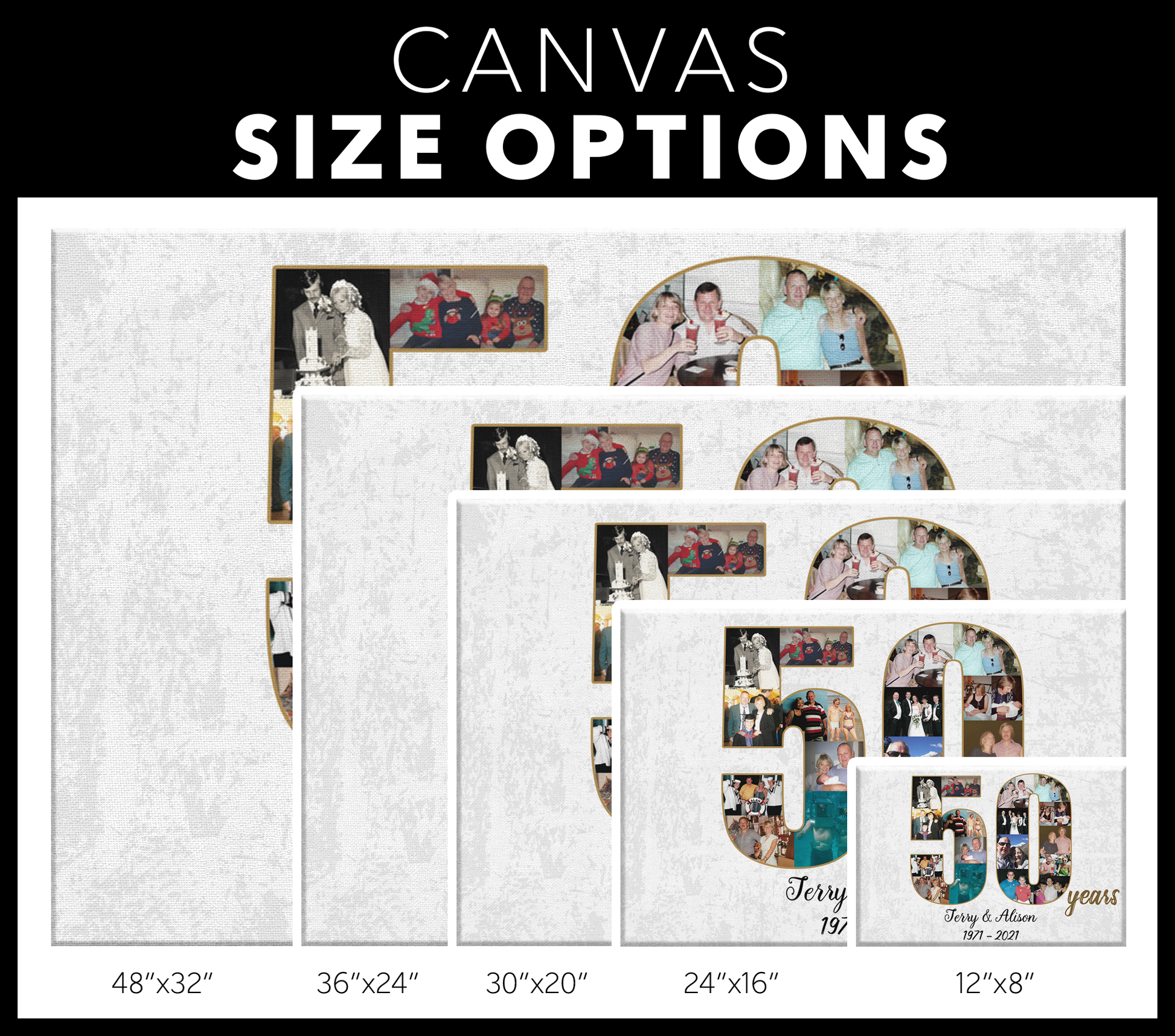 Traje esto para mi mamá y agregué fotografías antiguas de los años 70 y 80. Quedó genial, incluso las fotos antiguas salieron bastante claras. El material de la lona es de buena calidad.