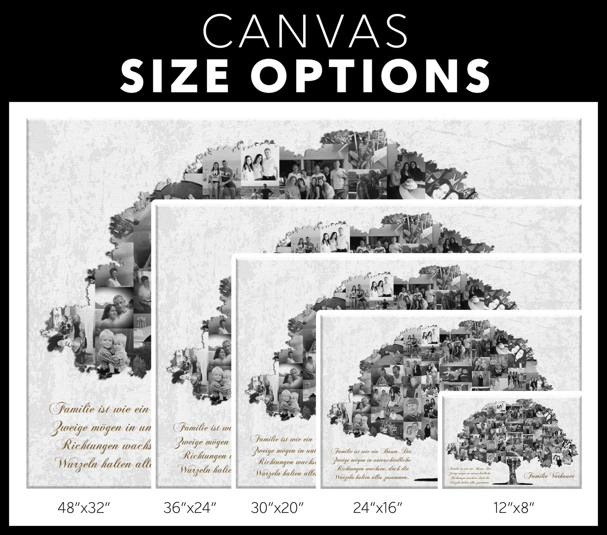 Traje esto para mi mamá y agregué fotografías antiguas de los años 70 y 80. Quedó genial, incluso las fotos antiguas salieron bastante claras. El material de la lona es de buena calidad.