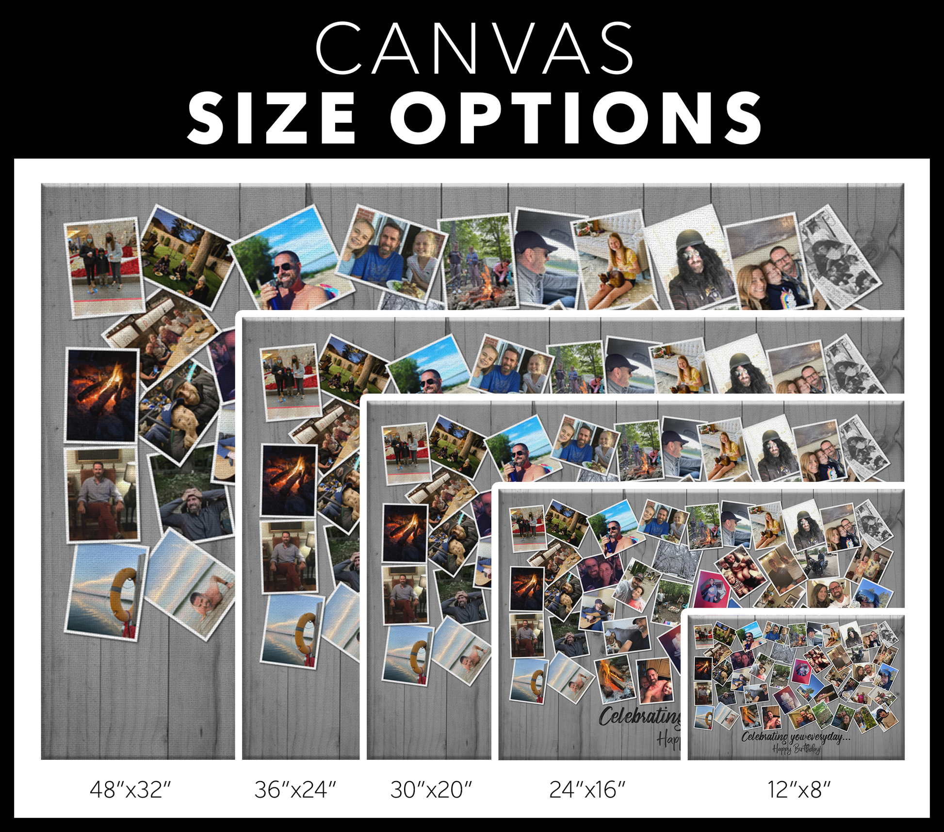Traje esto para mi mamá y agregué fotografías antiguas de los años 70 y 80. Quedó genial, incluso las fotos antiguas salieron bastante claras. El material de la lona es de buena calidad.