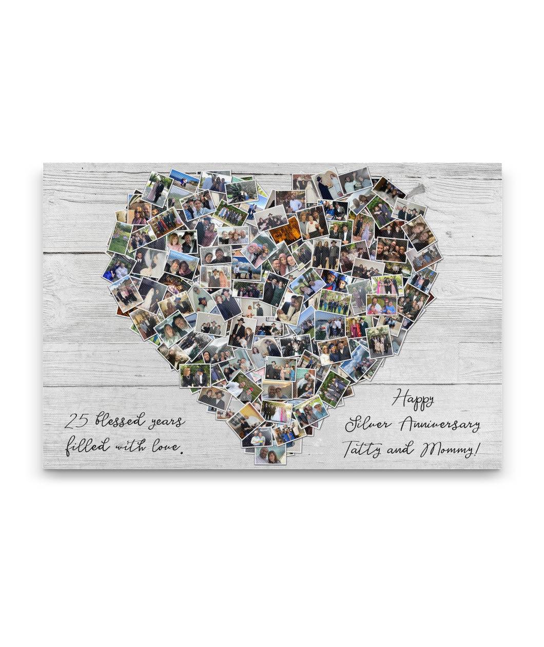 Traje esto para mi mamá y agregué fotografías antiguas de los años 70 y 80. Quedó genial, incluso las fotos antiguas salieron bastante claras. El material de la lona es de buena calidad.