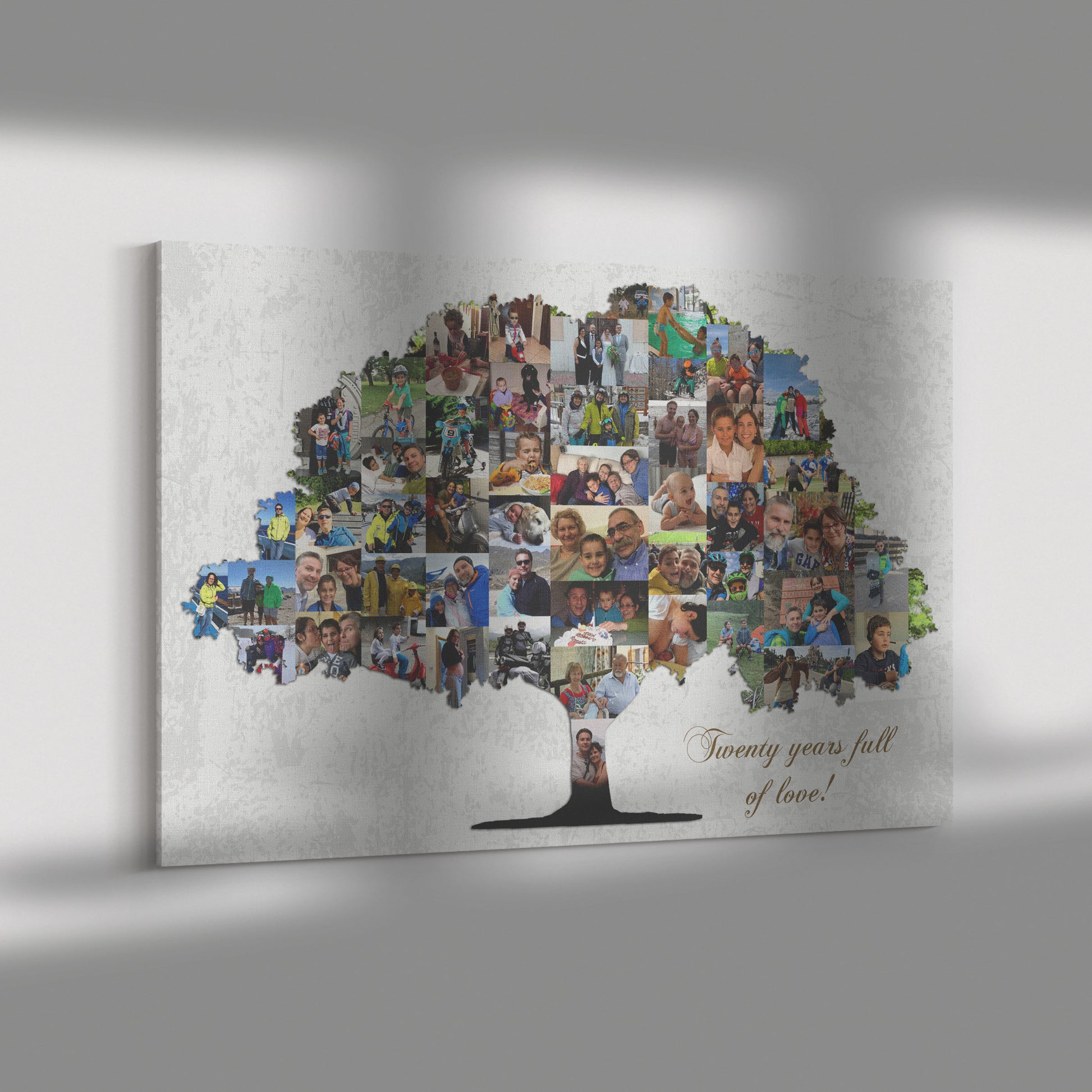 Traje esto para mi mamá y agregué fotografías antiguas de los años 70 y 80. Quedó genial, incluso las fotos antiguas salieron bastante claras. El material de la lona es de buena calidad.